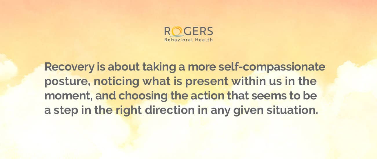 Recovery means bringing awareness to our internal experiences, courageously choosing behaviors that help us accomplish our goals in everyday life, and doing so with self-compassion. There isn’t a perfect way to go about this, so we need to be flexible and adapt if something doesn’t work out the way we thought it would.